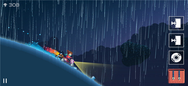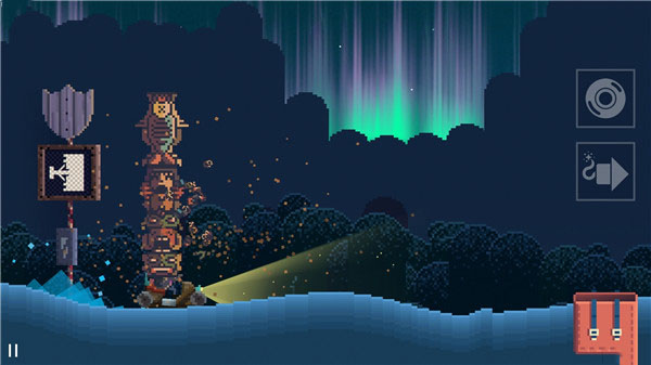 2、游戏在主要元素上都采用像素块组成,从主要建筑、角色、场景上都是如此,但是在个别场景,远处的背景上的极光效果,则是比较平滑的图片。整体的视觉效果上还是挺舒服的。