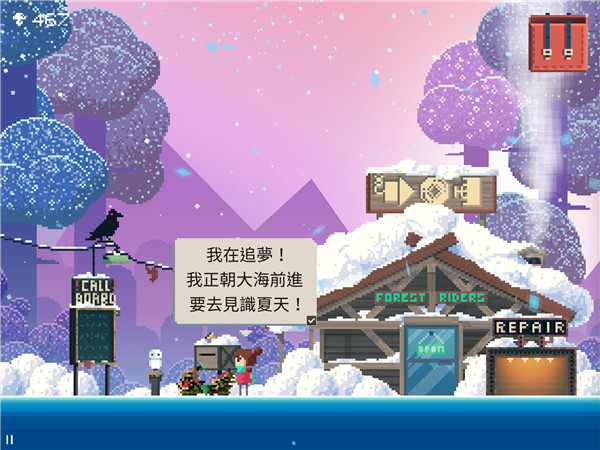 驾驶着心爱的小摩托,哦不,小雪橇,利用各种道具穿越这片森林是我们的目的。
