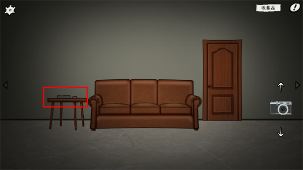 1.右转,移动至沙发场景,查看沙发左边茶几,拾取【打火机】【卡片】,记住上面的数字3142。