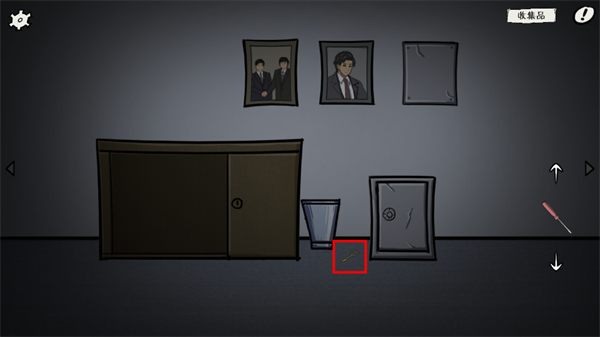 5.点击中间萨佩相框,相框变歪后,拾取地上的【柜门钥匙】。