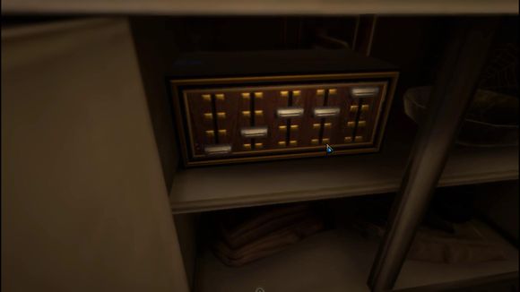 14、主卧浴室的画上时间,对应二楼的钟,填好后记得点击盾牌中间,密室打开;