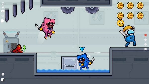 通过箭头移动红色冒名顶替者并避开障碍物。红色冒名顶替者必须避开水,而蓝色冒名顶替者必须避开火。