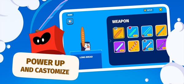 发现数十种有趣而疯狂的武器,从剑和斧头到面包和棒棒糖,这些武器将补充您的战士角色。用你的能力提升和惊喜你的对手。