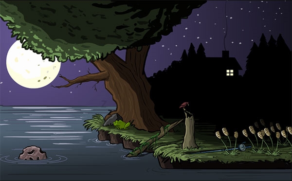 1、点击苹果核,虫子吃进去后吐出粘液吸引小飞虫和蜘蛛;