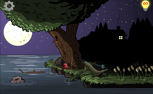 7、最后点一下陨石,引诱鱼咬钩,完成后点击虫子再多次点击鱼竿。