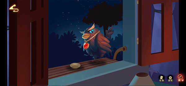 2、打开窗户就可以看见偷走红宝石项链的乌鸦,任务要求取回。