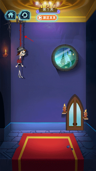 3、火柴先生从绳子上面下来走出房间,就表示通关成功了。