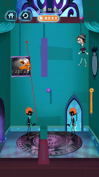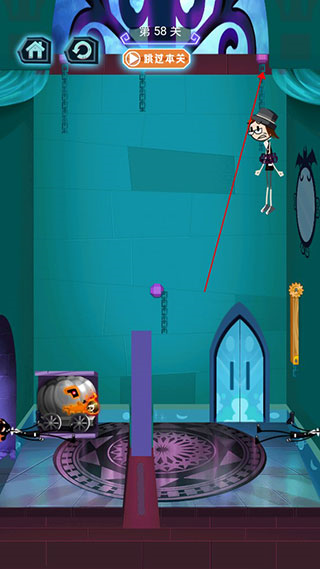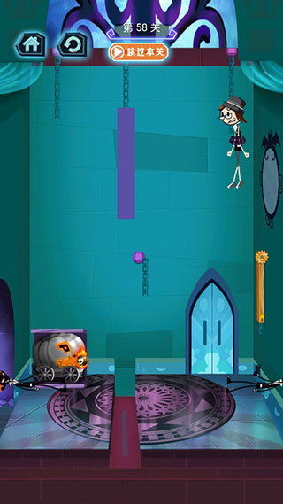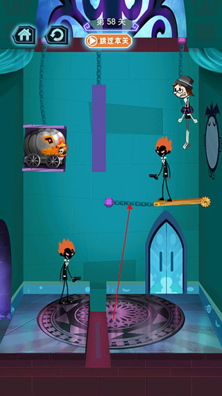 4、等到后期会发现关卡越来越难,就比如这一关出现了扎人的图钉,火柴先生需要远离那个陷阱之后才能割断绳子。