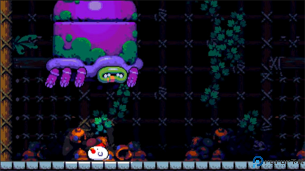 吐出黄色球: Boss 向我们滚来一颗黄色球,这时只需反推一个炸弹,与 Boss 的黄色球对撞将其炸掉。