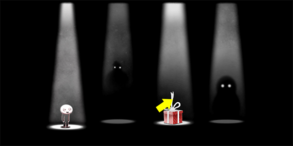 3、接着按照教程提示,向右滑动手指,来让小人移动,直到看到礼物盒