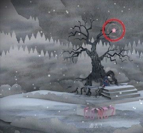 15、来到树下,将得到的樱花放到树枝上,进入传送点到达下一个章节