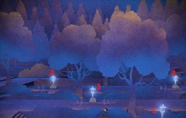 12、来到有四盏灯的地方,按照下面图片将四盏灯标上1、2、3、4