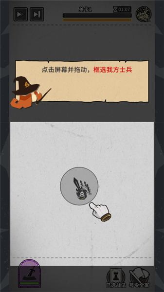 点击屏幕并拖动,框选我方士兵。