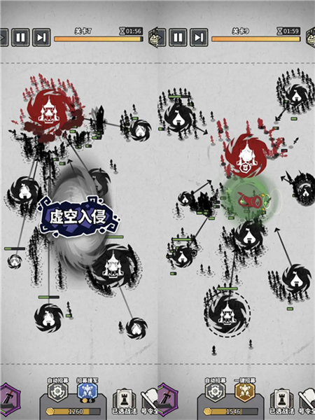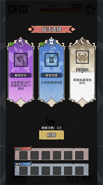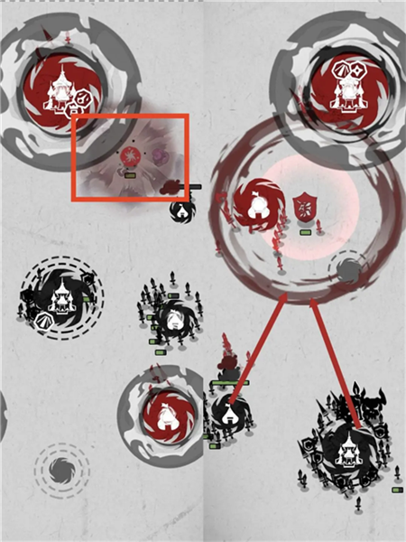 开局尽量抢占中立建筑,此时没有士兵防守,占领比较轻松。前几波别当莽夫,尽量通过英雄防守,减少士兵损耗。前期不要积累过多士兵,请疯狂升级自家大本营,提升产兵速度,方便屯兵。(产兵速度拉满才是王道,提升前期的产兵速度对后续的战斗非常重要)