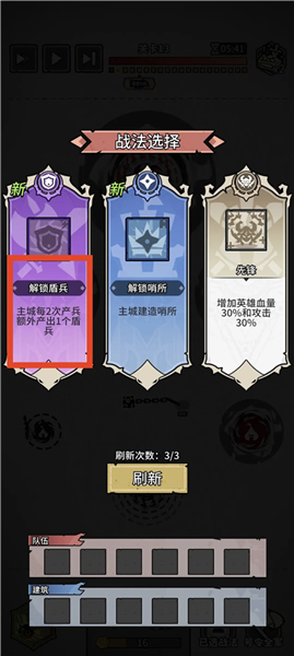 英雄类谋略和建筑类谋略在能选到士兵类谋略的情况下可以暂时不选,前期战斗使用士兵谋略增加士兵产量、属性和特效已经足够通关,选择其他谋略有可能会因为发育分散而出现战力不足的情况。