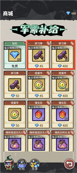 如果遇到卡关,可以在商店购买英雄和战备的培养材料,最优先购买装备的培养材料,攻击力+999,战斗会更加轻松。如果卡关明显,建议购买折扣研习券进行抽卡。