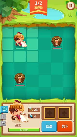 3、推进到【2/2-波怪物】时,利用战士属性提升的优势,继续点击【战斗】按钮,完成最后一波怪物的击败。