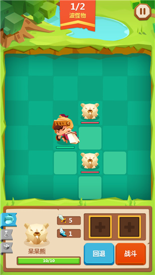 2、战斗时注意波数,【1/2-波怪物】阶段,瞄准【呆呆熊】,布置好后点击【战斗】按钮发起进攻。