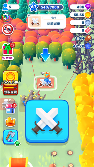 2、当出现大交叉图标并点击后就开始与敌方的城堡进行对抗;