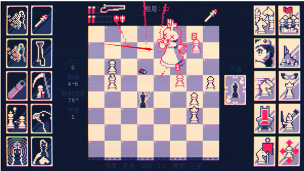 2、紧张刺激的游戏体验:玩家需要在回合制的基础上快速做出决策,利用国王的移动和射击来消灭敌方棋子,避免被将死。