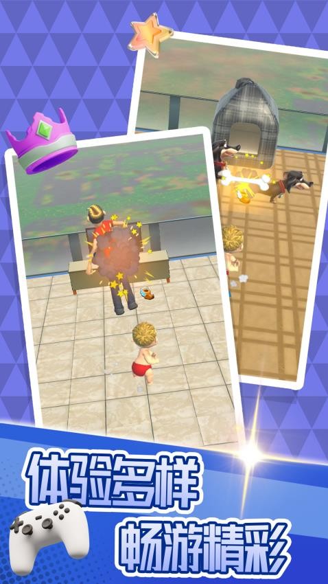 5、简单的闯关挑战玩法,您可以控制一个宝宝角色一直挑战关卡,体验不同的搞破坏玩法。