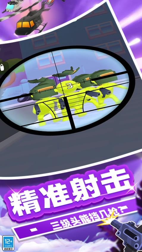 2、不同的防御状态,一些高级的敌人会有三级头盔,防御力增强,您需要射击很多次才能击毙敌人。