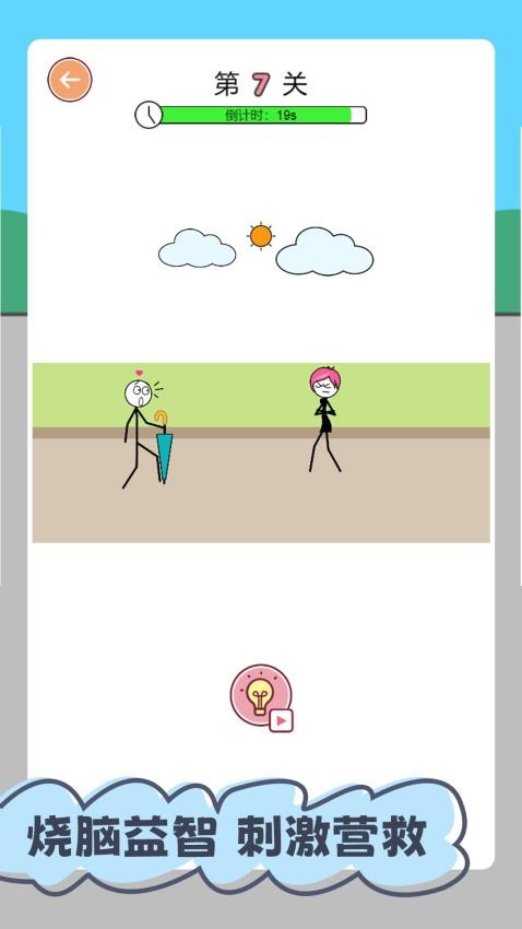 5、第七关界面,显示很多扫脑的玩法,分析如何使用雨伞才能帮助角色求婚。