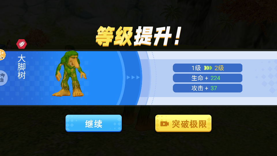 4、如图所示,提示等级提升,增加224生命值,增加37攻击力,回到地图继续战斗。