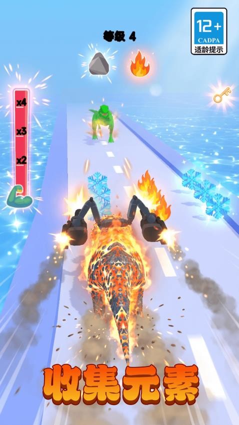 1、在奔跑的时候可以收集相关的物品,比如雪花、火焰等等,得到相应属性。
