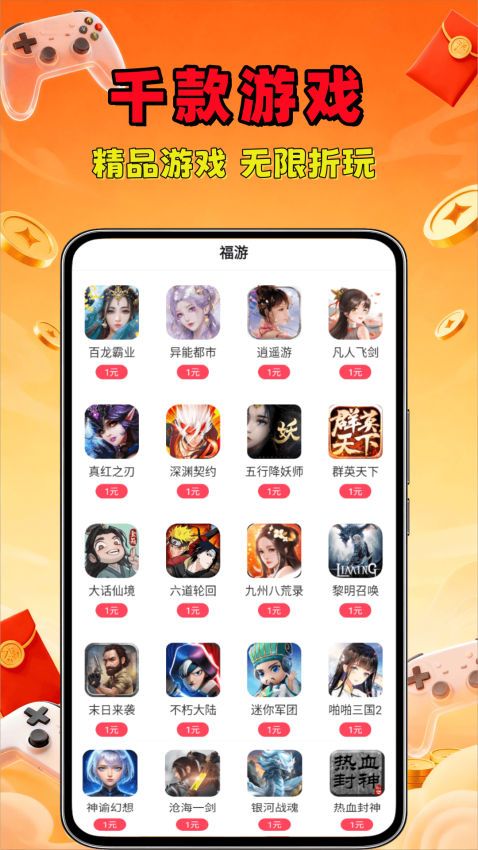 1元福游app是玩家提供各种游戏资源的平台,这里你可以后去许多高人气的游戏内容,以后玩家可以发现许多好玩的游戏,只要是你感兴趣的游戏,都可以直接在平台快速体验的,让你能够及时体验各种好玩、有趣的游戏内容,以后玩游戏才会更有乐趣;1元福游最新版还为新玩家提供了新人专项福利礼包,你在这里就可以领取礼包资源,成功领取礼包以后,可以在充值的时候使用,让你能够享受更多的充值折扣优惠,为玩家提供更加优质的游戏体验,感兴趣的玩家快来下载吧,平台的游戏种类非常的丰富,不同类型的游戏都能够快速找到!