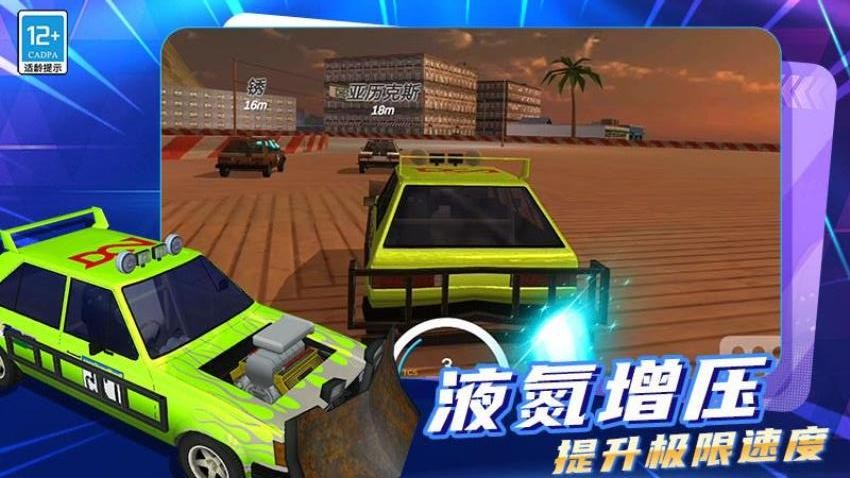 这是一款充满激情与碰撞的赛车竞速游戏。玩家将驾驶经过独特改装的赛车,在沙漠、城市赛道等多样场景中驰骋。通过液氮增压提升极限速度,体验风驰电掣的快感。自由驾驶探索世界,还能感受奇葩搞怪叠放赛车的乐趣。在狂野赛道上,与对手展开激烈角逐,撞飞对手,主宰竞技场,享受竞速的无限激情。