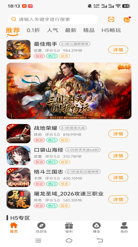 非常丰厚的折扣手游,所有你喜欢的手游均可在应用中体验,消费更加实惠;
