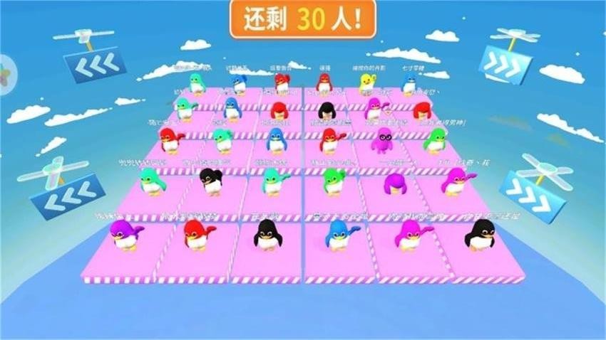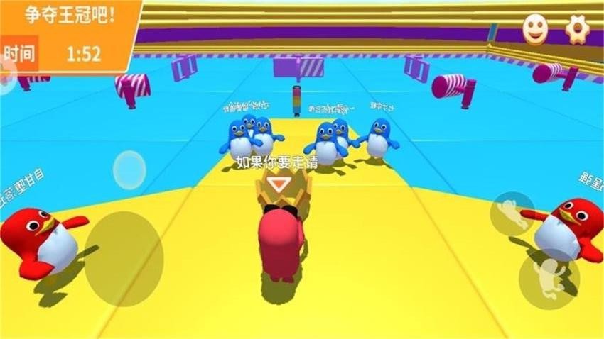 3、在淘汰赛中,玩家需要与其他糖豆角色竞争,争夺生存和胜利的机会。可以使用道具和策略来干扰对手,增加自己的生存机会。