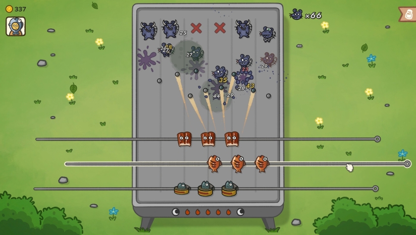 游戏采用可爱治愈的手绘风格,以Q版卡通画风呈现烧烤摊战场的混乱与热闹。无论是食材形象还是鼠鼠敌人的设计,都充满诙谐可爱的细节,营造出温馨愉快又解压的氛围。整体视觉表现既保留了街头烧烤的烟火气,又通过明亮色彩和流畅动画让整个防御过程充满动态乐趣,让玩家在守护烤炉的同时享受视觉上的轻松体验。