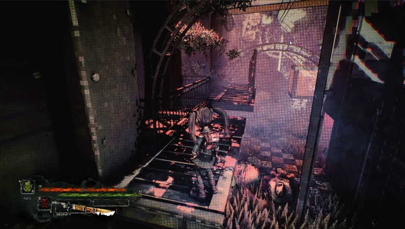 《Dithered》采用独特的视觉风格,营造出黑暗、寒冷但动态美丽的游戏世界。游戏画面融合了哥特式美学与故障艺术(Glitch)元素,创造出超现实的噩梦氛围。