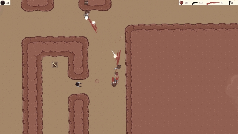 是一款以狂野西部为背景的roguelike射击游戏。一路击杀占领乡村的不法之徒,最终击败他们的头目。收集更多弹药和炸药,打造你的武器库。
