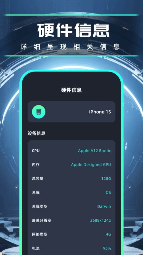 详细的硬件信息,可全面了解设备CPU、内存、总容量和网络类型等信息;