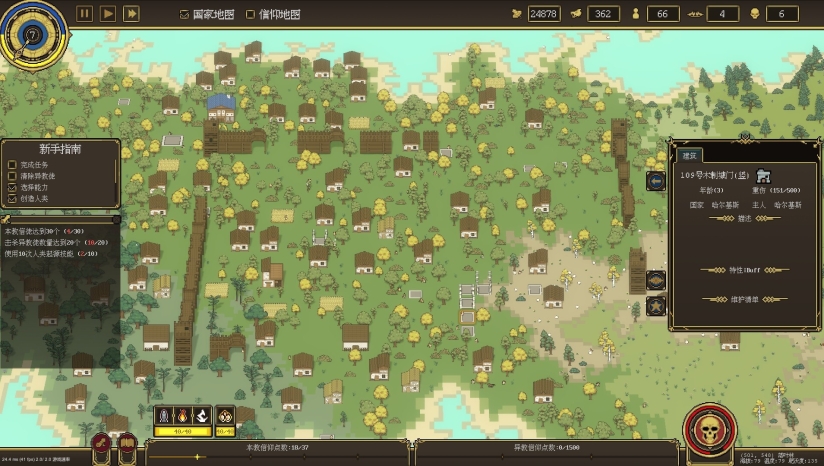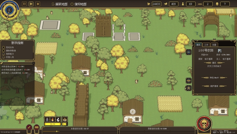 在随机生成的沙盒世界中,每一个人类单位都拥有自己的名字和独特的特质。你可以作为观察者,看着他们自发地工作、繁衍;也可以主动介入,通过神力创造资源、增加人口或赐予科技启示,引导文明从松散的聚落成长为坚固的城邦。