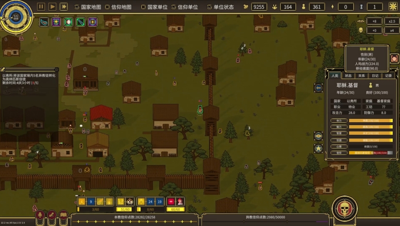 “信仰”是连接神与人的核心资源。你需要施展神迹来感化凡人,将其转化为信徒并获取“信仰值”,进而解锁或强化更高级的神力。此外,你还需要在神庙中聆听祈祷——完成信徒的请求后,可以选择激活一件神器,赋予文明更多增益效果。