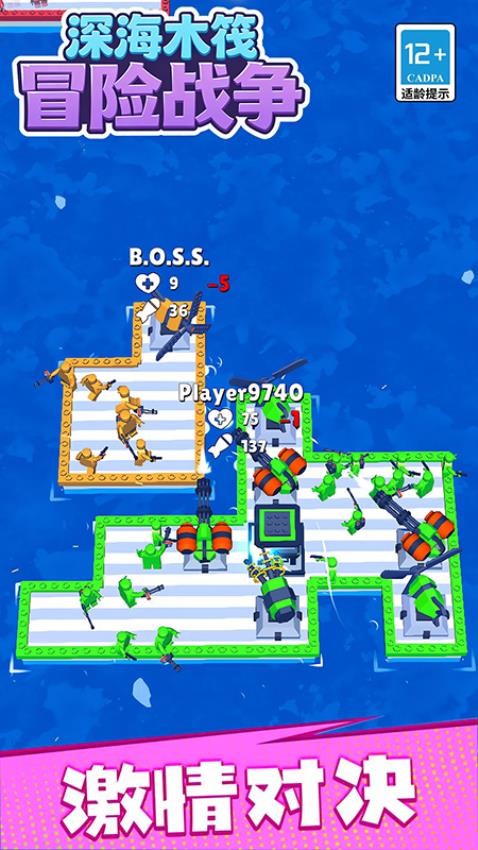 深海木筏冒险战争手机游戏是一款充满创意与挑战性的海上策略战争游戏。游戏中玩家开局就会置身于广阔的海域开启精彩刺激的战斗,击败敌人就能吞掉对方的木筏扩大自身面积和战斗力,也能收集海洋资源打造全新板块和独特的武器装备,这能稳定提升作战能力应对敌人,组建出强大的军团队伍就能开启惊心动魄的生存之战,这也能展现极强的策略能力。指挥橡皮人战士行动建立海上军事基地,抵御所有进攻完成战斗即可获取奖励,丰富的武器系统可以按照自己的想法进行打造,喜欢的朋友快来下载试试吧。