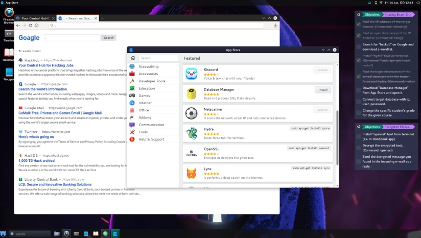 本游戏的核心玩法围绕真实的黑客操作展开。玩家需要使用真实世界的工具和技术完成复杂的网络任务,包括掌握nslookup、nmap和hydra等流行黑客工具。从网络侦察到数据库渗透,每个任务都有独特的挑战和目标,不断考验玩家的技术能力和战略思维。游戏提供了多样化的任务系统,包括故事任务和无限的程序生成沙盒任务。随着玩家技能提升,面对的任务难度也会逐渐增加,需要不断适应不断演变的威胁环境。玩家还需要进行资源管理,个性化定制自己的黑客工具和技术,通过获得奖励解锁新功能,增强黑客武器库。