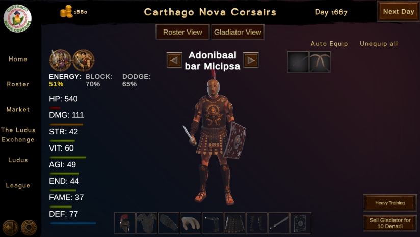角斗士是你卢杜斯的核心。通过胜利提升他们的名望,为他们购买武器与护甲,引导他们走向伟大。