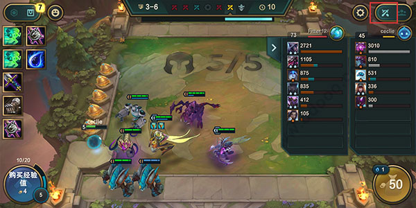 羁绊图鉴位置与端游一致,装备栏则整合至羁绊按钮旁侧,便于快速查阅与管理。战场信息面板实时呈现双方输出统计,卡池刷新状态亦常驻屏幕顶部,确保关键信息一目了然。