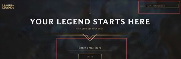 访问美服官网前请确保加速器已开启,否则无法正常加载页面。进入官网后,右上角默认显示北美,如需注册其他区域账号,可手动切换对应服务器选项。填写有效邮箱地址(QQ邮箱等常用邮箱均可),点击START进入下一环节。