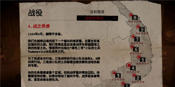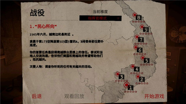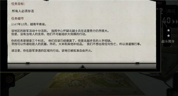 本关重在建立基础操作手感。a排降落后前往村庄探查,与村民交谈触发营地标记。标记点附近潜伏着越共小队,通常避开正面接触。摧毁营地后敌军转为反扑态势,此时若提前部署b排于侧翼,可形成夹击优势。若a排孤军作战,待其发出求援信号后启用燃烧弹支援,火线覆盖能迅速瓦解敌方阵型。任务结束只需全员撤回着陆区,对话分支不影响核心进程。