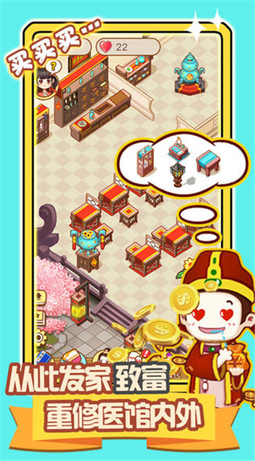 成功治愈病人可获得经验和金钱奖励,用于升级医馆。