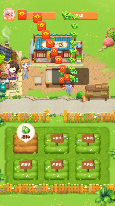 作物成熟后,点击它们即可收获,收获的农产品可以出售或用于完成任务。