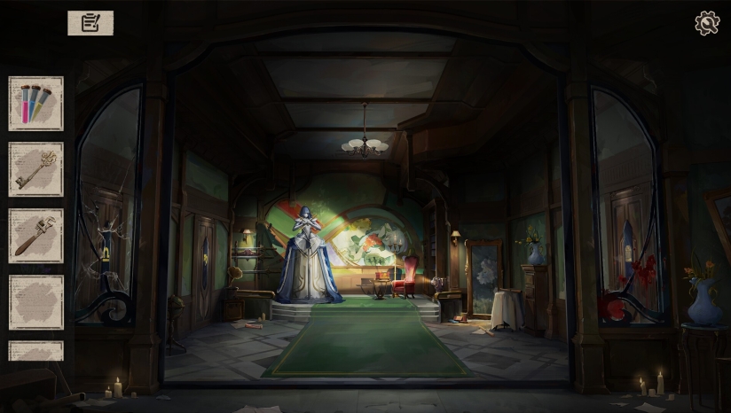 2、搜集道具、观察环境中的线索,解开谜题,向庄园深处前进。