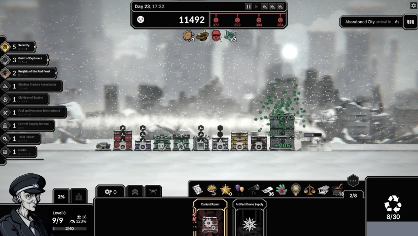 《霜雪列车2(Frostrain 2)》是由nemonan开发并发行的一款以协同构筑为核心、融合经营要素的Roguelike游戏,支持简体中文。在这个冰封的世界中,玩家将作为列车社会最后的机车司机,带领乘客生存下去。游戏的核心并非直接操控,而是围绕卡牌构建展开。玩家通过获取代表行动、建设和升级选项的卡牌,精心构筑卡组来影响列车的发展,每一局游戏都充满变数。玩家需获取、部署并强化列车,生产幸福度,通过一次次决断,为列车指明前进的方向。