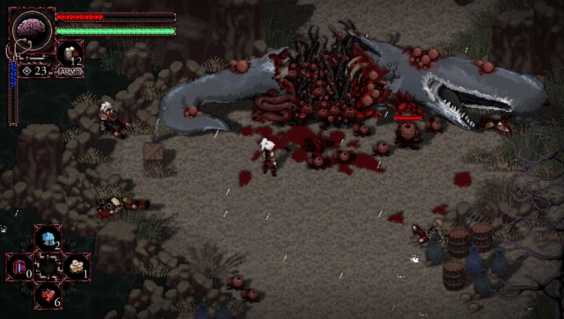 《病态:七侍者》是Merge Games的像素风恐怖朋克类魂动作RPG,融合洛夫克拉夫特式恐怖与克伦伯格式血腥元素,采用等距视角呈现。玩家扮演迪布罗姆王国最后的幸存者,肩负毕生使命,击败被邪神加哈尔附身的七名侍者以拯救王国。游戏提供25种以上近战武器与多款枪械,支持战斗中灵活切换,拥有角色属性、武器升级等养成系统,搭配18首管弦乐配乐,主打高难度BOSS战与暗黑哥特式探索,无死亡惩罚,流程紧凑,支持简体中文等多语言。